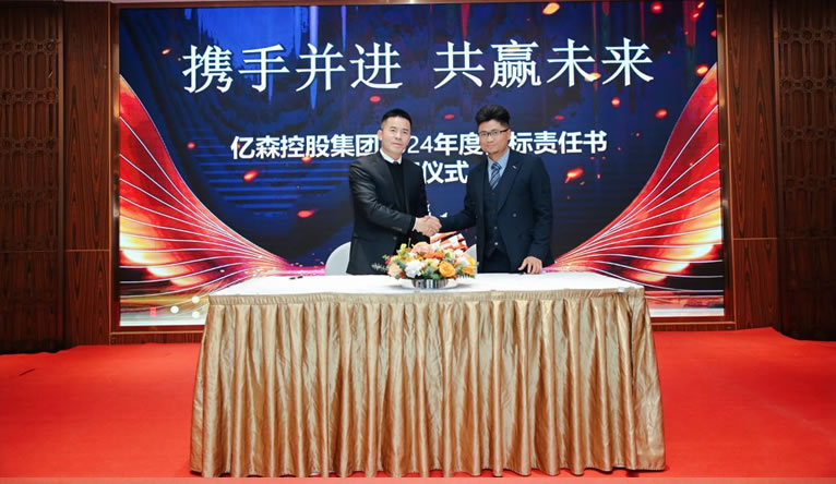 緊接著,大會舉行了2024年度目標責任書簽訂儀式。億森動力管理人員、億森建工各項目經理、集團職能部門負責人與董事長分別簽訂了2024年目標責任書。這一儀式不僅彰顯了集團對未來發展的堅定信心,也激發了全體員工的斗志和責任感。大家將攜手并進,共同為實現更高的發展目標而努力。