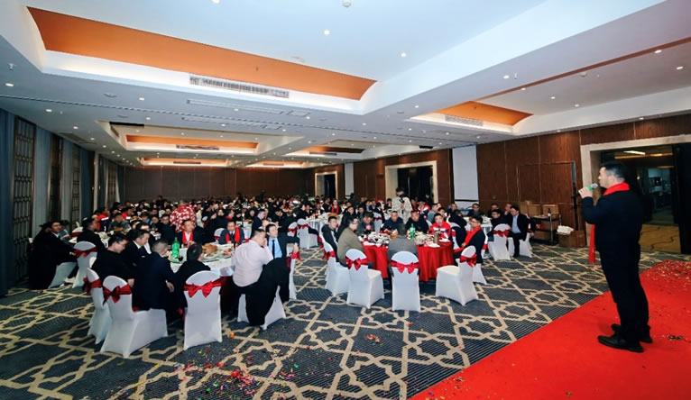 大會最后,一場別開生面的“億森20周年”新春團拜文藝匯演將氣氛推向了高潮。公司內部員工自編自導的歌曲、三句半、舞蹈、相聲等多種才藝表演輪番上演,展現了億森人多才多藝的一面。在歡快祥和的氛圍中,全體高管合唱的《明天會更好》將晚會推向了高潮。集團董事長發表了祝酒詞,對2023年的工作成果給予了高度評價,并對20周年慶提出了新的期待。他向億森全體同仁及家人表達了衷心的感謝和美好祝愿,并激情承諾將帶領集團“再戰20年”。